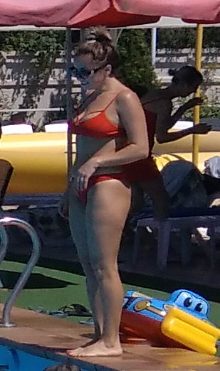 Мужчина Девушка в красном купальнике секси, но фоткал с далека, фото не качественное, а в живую - всё очень красиво.