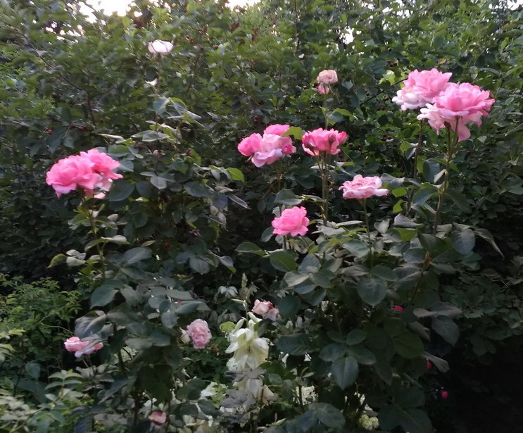 Мужчина Розы во всю цветут. Хотя жара и давно не было дождя, скоро всё погибнет - где нет полива.