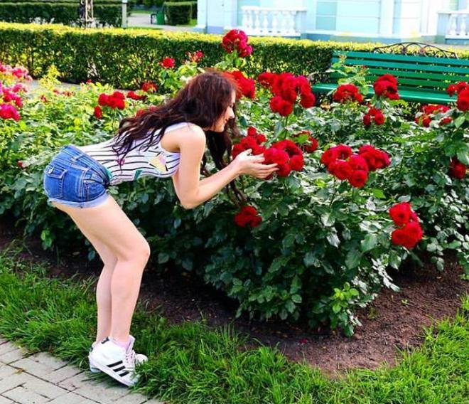 Мужчина Как Вам девушка на фото? Цель такой фотки - цветы, или же показать попку?
