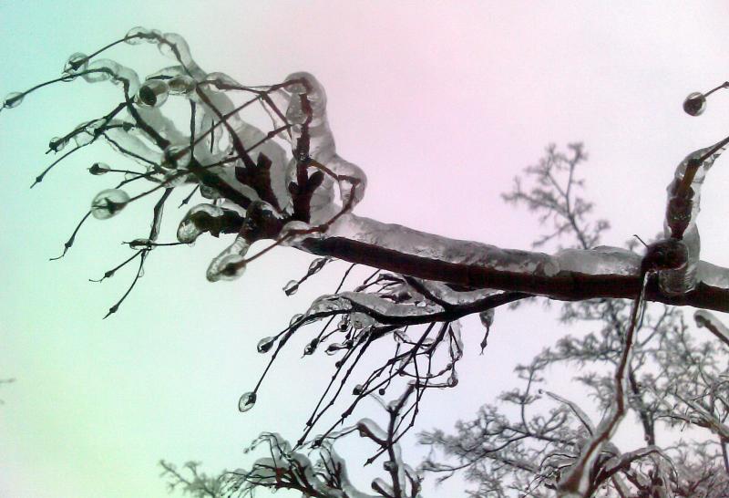 А еще от тепла на деревьях почки, теперь они замерзли под льдом.