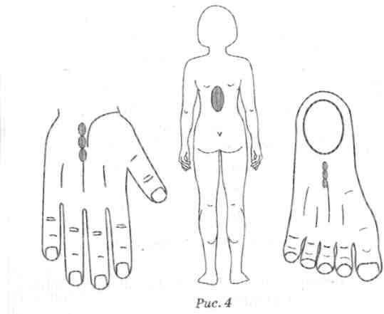 Лечим спину, воздействуя на кисть и стопу: «волшебные точки» су-джок До сих пор не существовало метода снятия боли и нервного напряжения, которым можно было бы настолько легко овладеть и получать при этом такой значительный и быстрый результат! Студент из Кореи Кисти и стопы по своему строению подобны телу, отражая в уменьшенном виде анатомическое строение организма. На них расположены активные точки, которые соответствуют определенным органам и участкам тела. Если вы заболели, «сигнал» направляется из пораженного органа или части тела в соответствующую точку и приводит ее в возбужденное состояние — точка становится болезненной. Стимуляция таких точек оказывает ярко выраженное лечебное и профилактическое действие. Поиск лечебной точки (Рис. 4) производится путем надавливания на предполагаемые места пальцем, спичкой или карандашом. Лечебная точка всегда болезненна. |
