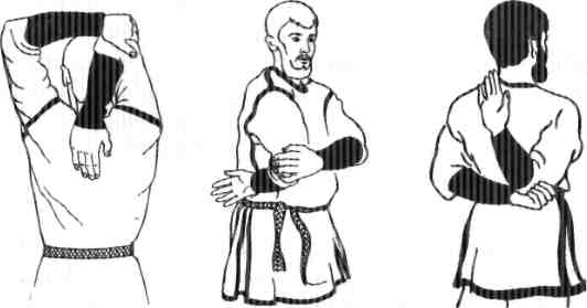 Руки согнуты перед грудью локтями вверх. Опущенные ладони следует держать на весу, не касаясь ими живота. Помощник должен соединить ваши руки перед грудью, не поднимая локти выше подбородка. Мышцы спины расслаблены. Упражнение выполняется на выдохе и повторяется 1520 раз (Рис. 52).