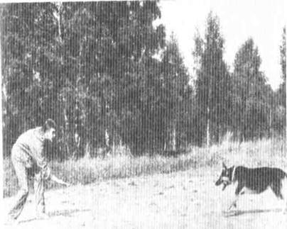 Рис. 4. Приучение щенка отходить от хозяина по команде «Гуляй»