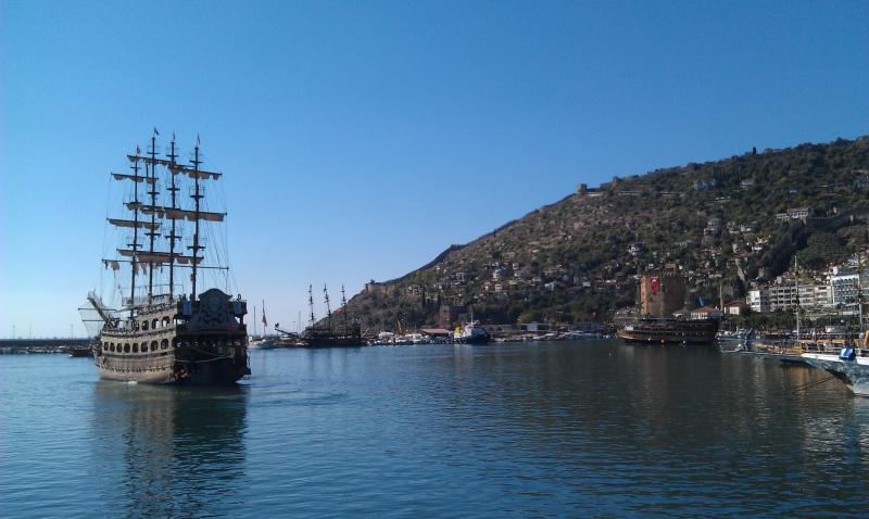 Мужчина Несколько фото достопримечательностей Аланьи, которые я увидел - это красивая набережная с кораблями и турецкая крепость примерно 1200 годов постройки.