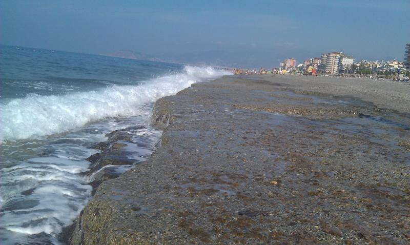 Мужчина Берег моря Махмутлара - камень, в котором прорубили спуски к морю (недалеко от Алании).