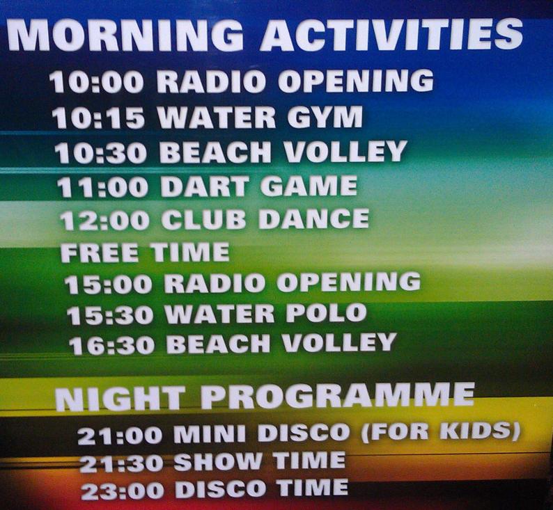 Расписание анимации в отеле Sun Fire Beach в Турции.