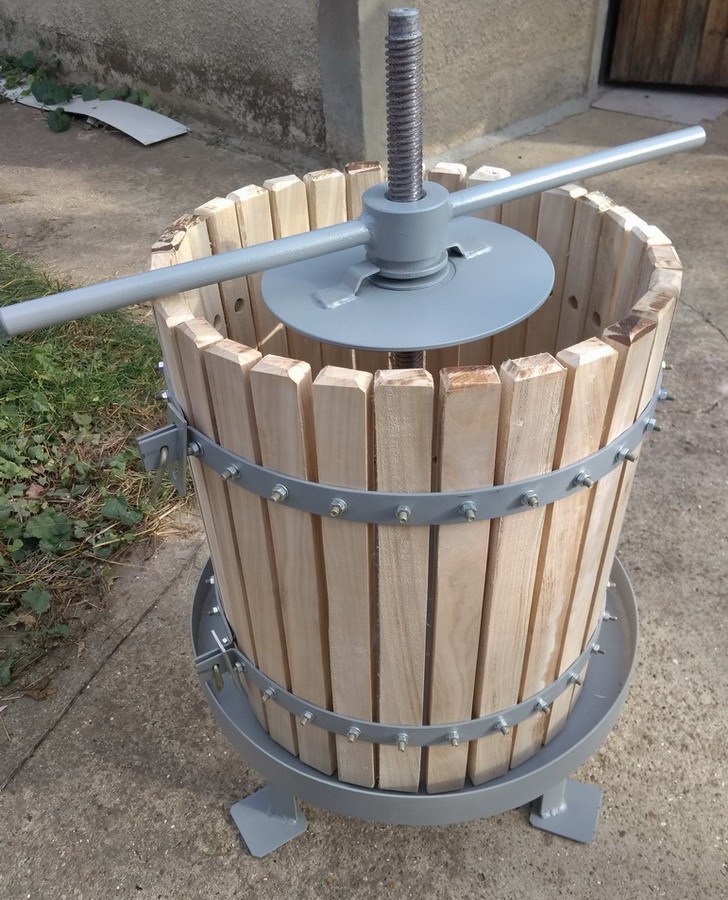 Мужчина Лично я купил вот такой пресс для винограда за 100 долларов. Собрал виноград, прокрутил его теребилкой. Скоро выжму сок.