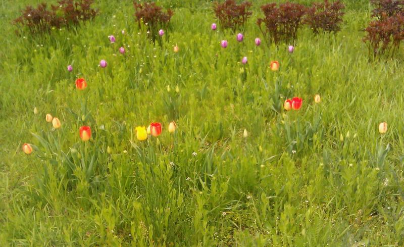 Добавил для сравнения фото того же места с березкой и тюльпанами уже на следующий день.