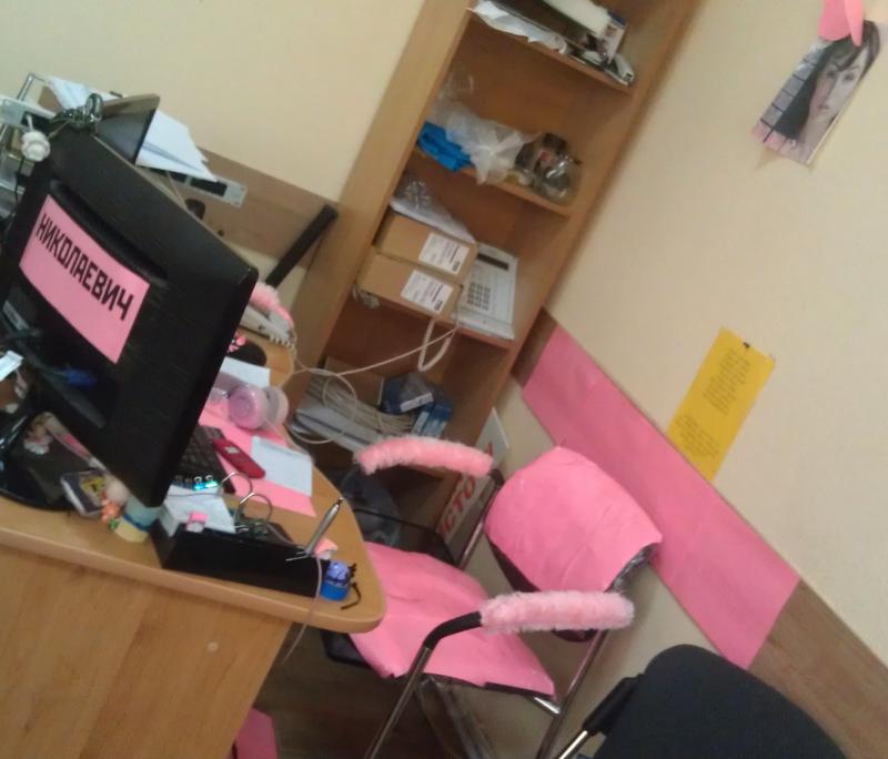 Фото смешного рабочего места одного мужчины. В шутку ему так его оформили.