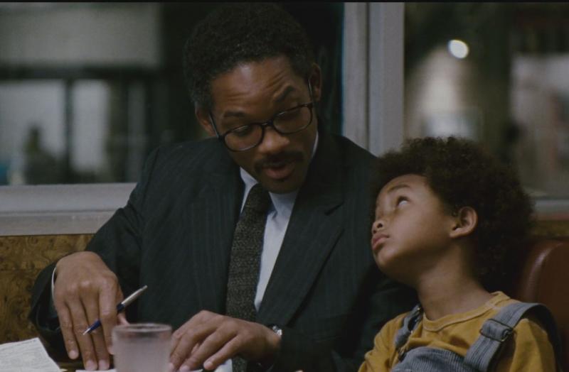 В погоне за счастьем - главный герой вопреки всем невзгодам жизни идет к своей цели - работа в престижной брокерской конторе.