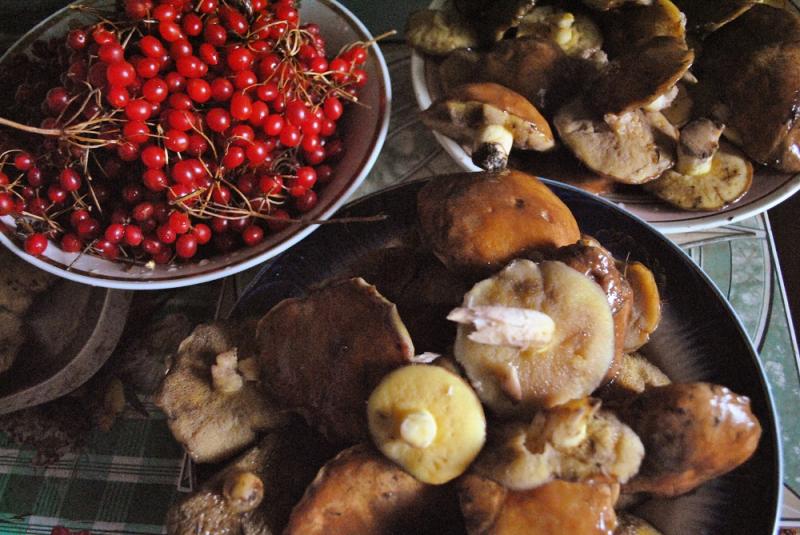 у нас белых почти нет, много всяких сыроежек - оч красивые, их у нас умеют знатно готовить и многие бабашки разбираются в них.