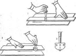 Стекольные работы. Окна требуют постоянного ухо*да и периодического ремонта. Для окон обычно применяют стекло толщиной 2—4 мм. Это очень хрупкий материал, обращаться с ним нужно осто*рожно: большие листы кладут только на ровную поверхность, хранят, поставив на ребро, при пере*носке держат обеими руками с противоположных сторон. Для резки применяют стеклорезы, в *которых режущим элементом служит алмаз или ролик из твердого сплава. У алмазного камня несколько граней; если одна затупится, его пересаживают, повернув на 90°. Затупившийся ролик заменяют но*вым или затачивают на мелкозернистом наждачном круге.