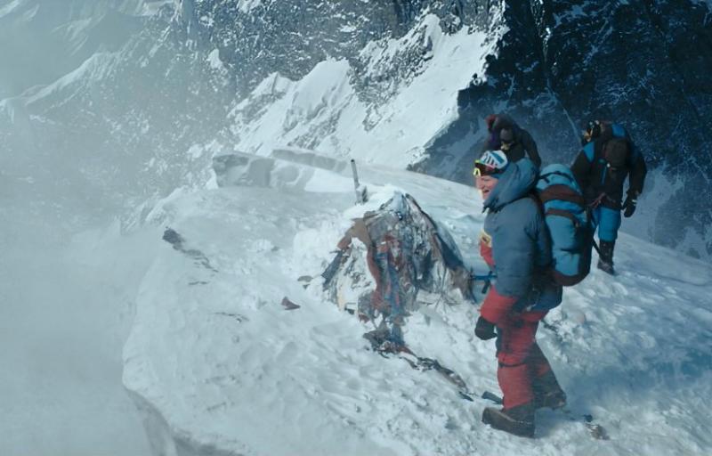 Приключенческая драма "Эверест" 2015 года. Туристы с опытными инструкторами забрались на Эверест, всё круто, фотки, а как начали спускаться - начался снежный буран. Трагический финал.