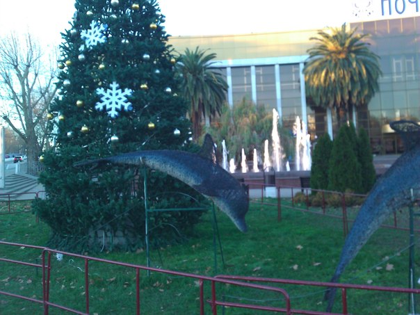 А, под этими двумя дельфинами я курила ночью, потому что я потерялась в Сочи, и плюс ко всему у меня села трубка) весело было, в общем.