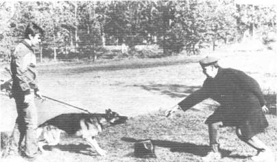 Рис. 2. Развитие злобы у собаки Рис.3. Приучение собаки задерживать убегающего Рис.4. Приучение собаки охранять задержанного Рис 5. Приучение собаки конвоировать задержанного человека Рис. 6. Приучение собаки охранять вещи Рис. 7. Приучение собаки занюхивать запах предмета |
