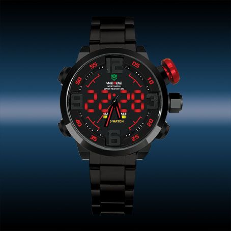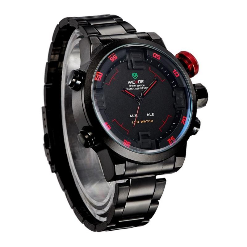 "Часы WEIDE Sport Watch - это стильные часы в стальном корпусе. Уникальная конструкция часов выдержит любую нагрузку. Корпус часов изготовлен из гальванизированной нержавеющей стали, а стекло выполнено из высокопрочного современного материала - HARDLEX. Часы WEIDE Sport Watch не боятся нагрузок, ударов, падений, не восприимчивы к воде, пыли, грязи и магнитным излучениям. В них можно заниматься спортом, купаться, нырять с аквалангом до 30 м, кататься на лыжах. Движком часов WEIDE Sport Watch служит надежный, проверенный японский кварцевый механизм. Материал браслета: закаленная сталь со специальным антивандальным покрытием. Особенностью этих часов является наличие цифровой и аналоговой индикации одновременно Бренд: "WEIDE" Вид: наручные часы Тип: мужские, спортивные Механизм: кварцевый Материал браслета: IPS гальванизированная, экологическая нержавеющая сталь Стекло: минеральное, ударопрочное Функции: Время, дата, день недели, будильник, дополнительная зона (для путешествий) Особенности: ударопрочность, водонепроницаемость до 30м Цвет: черный с красным и синим Вес: 200г" Заказать можно по телефону +7 (912) 716-0069 Стоимость 1790руб + доставка |