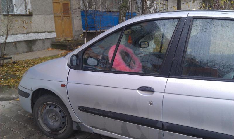 Еще и розовую футболку подарили. Продолжение, подарили меховую розовую оплетку на руль, вот что вышло: |