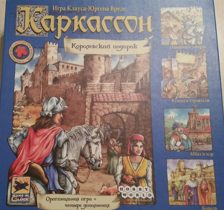 Каркассон. У нас с 4мя расширениями, можно их играть по-отдельности, а можно все сразу, тогда игра будет длиться чуть дольше. Но интересная...