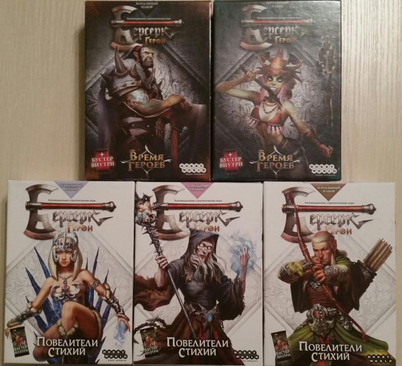 Ну и карточная Берсерк, о которой я уже писала. Игра на двоих. У нас 5 героев, выбираем одного и вперед... У героев отличается магия и карты, каждый по своему хорош. В черных коробках старый выпуск, в белых уже обновления... Хотя мне черные больше нравятся )))