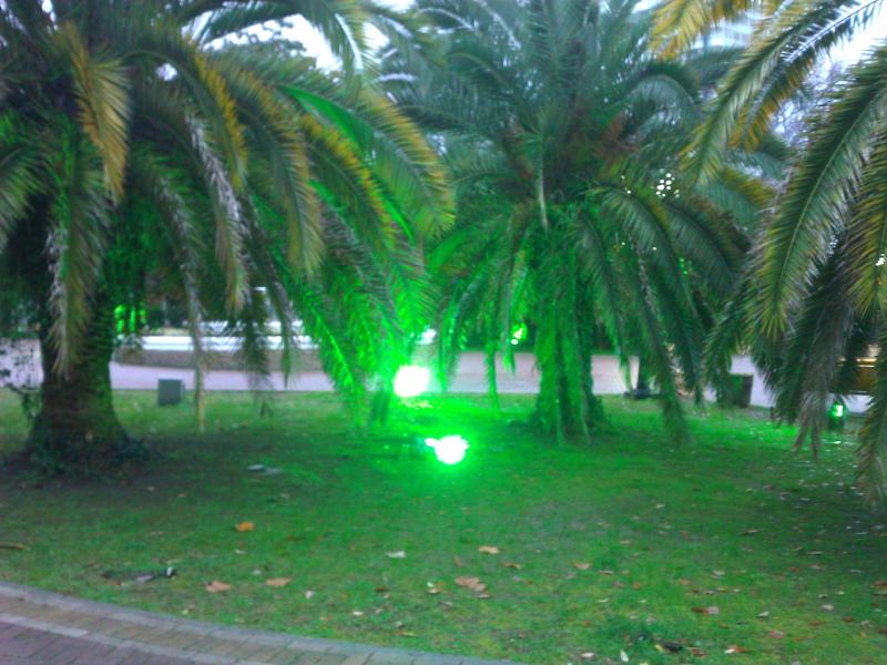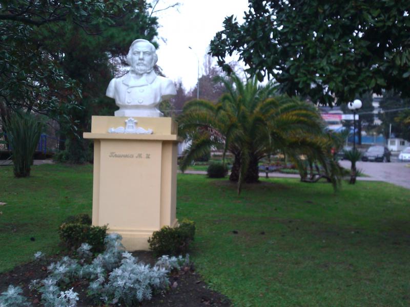 Памятники Чайковскому и Глинке, в одном из сквериков, тоже в неизменно неоновой, зелено-кислотной подсветке.
