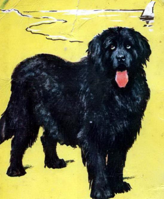 НЬЮФАУНДЛЕНД (ВОДОЛАЗ) — выведен на острове Ньюфаундленд. Хорошо плавает, помогает рыбакам вытаскивать сети, спасает утопающих. Масть черная с красноватым отливом.